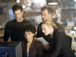 As last night’s episode of Fringe opened, Senator James Van Horn’s car was hit by a truck. Broyles meets meets hima nd his wife at the hospital. While doctors worked on the Senator, Newton charges in and starts shooting. Newton wheels the senator out, then as Broyles comes after him, Newton shoots the senator in the eye and flees. The senator bleeds mercury, turns out he’s a shapeshifter!